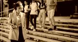 A teacher engages with students outside, fostering communication and learning in an educational setting.