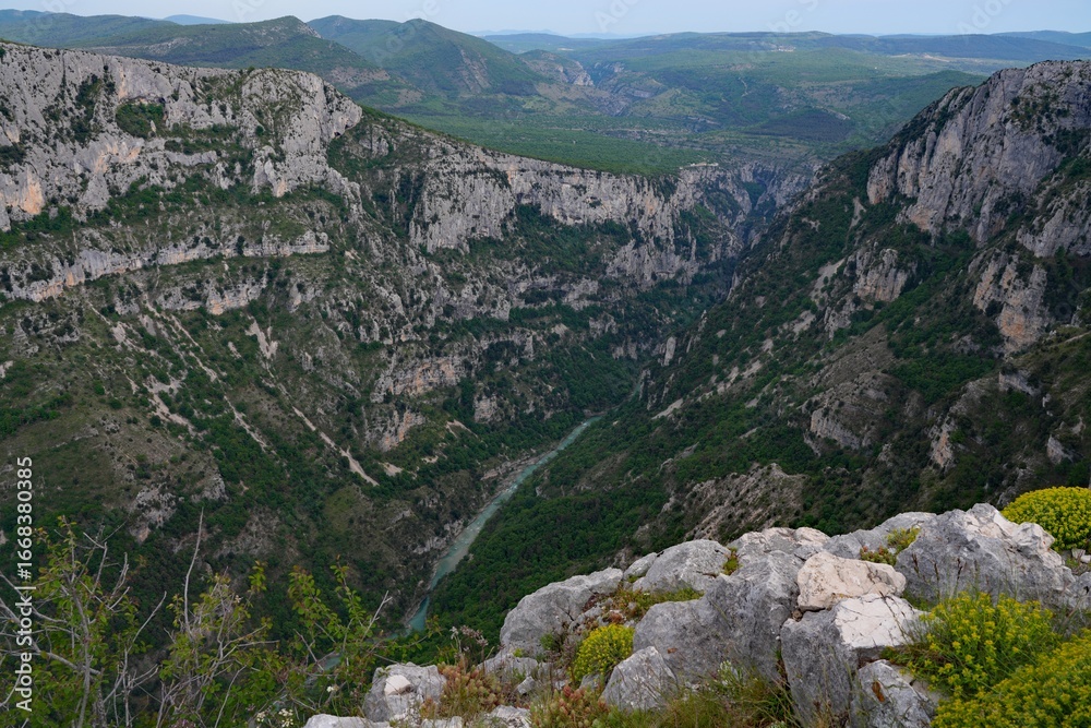 Plunging view over the Verdon River in the Gorges du Verdon area, a canyon, in the south of France