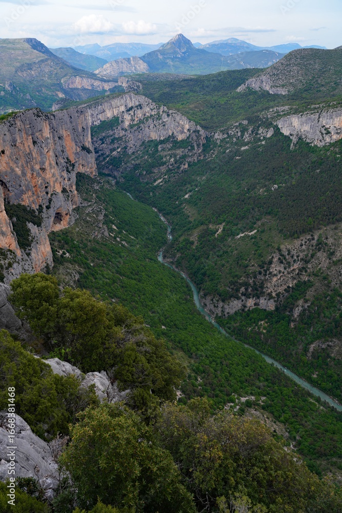 Plunging view over the Verdon River in the Gorges du Verdon area, a canyon, in the south of France