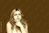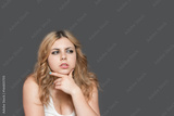 Studio shot of thoughtful attractive long haired teenage girl