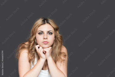 Long haired teenage girl supporting her chin by both hands