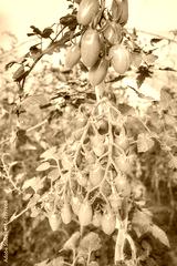 Organic tomatoes grown in a greenhouse, selective focus.