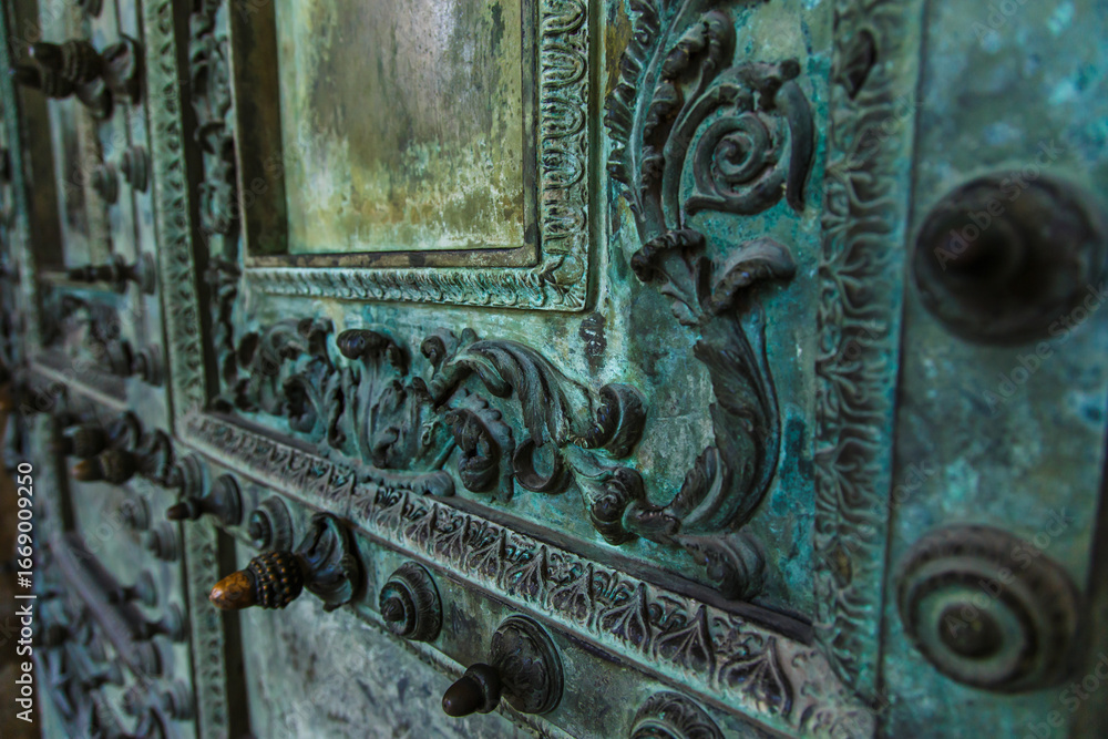 Copper Door of the Basilica di San Giovanni in Laterano in Rome, Italy. Close-up fragment