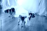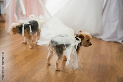orkshire Terriers Wearing White Tulle at Indoor Wedding Ceremony