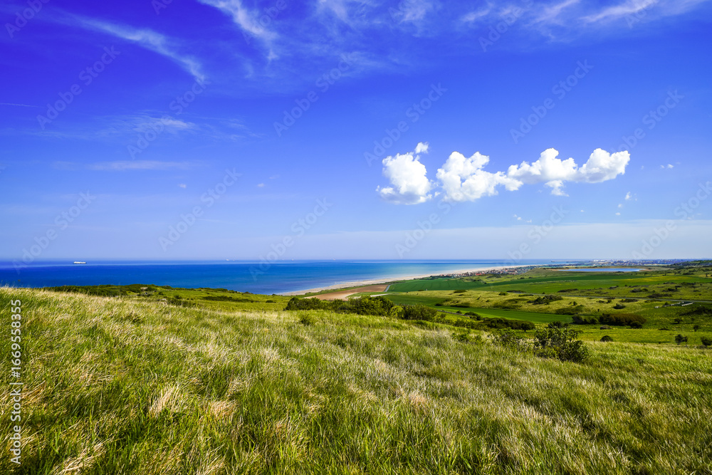 View of the landscape at Cap Blanc Nez in France. Nature on the Channel coast.