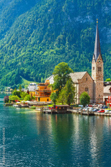 Chapel in Hallstatt old town famous landmark Austria on lake