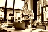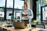 Inspirational young businessman reflects on ideas in modern office space filled with greenery