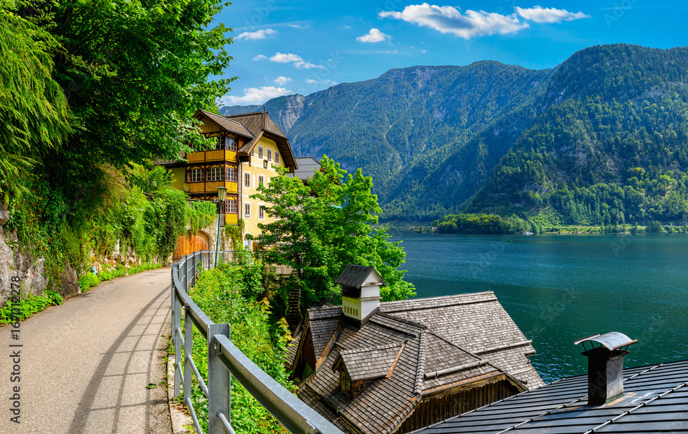 Chapel in Hallstatt old town famous landmark Austria on lake