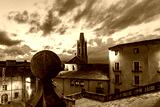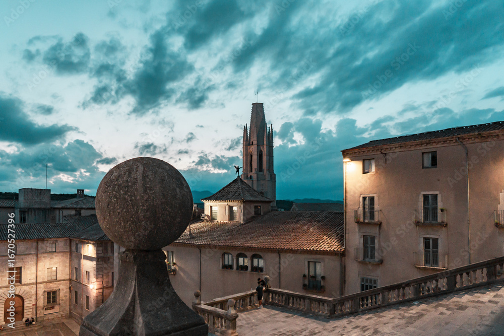 View of the basilica of St. Felix in Girona, Spain at the dusk