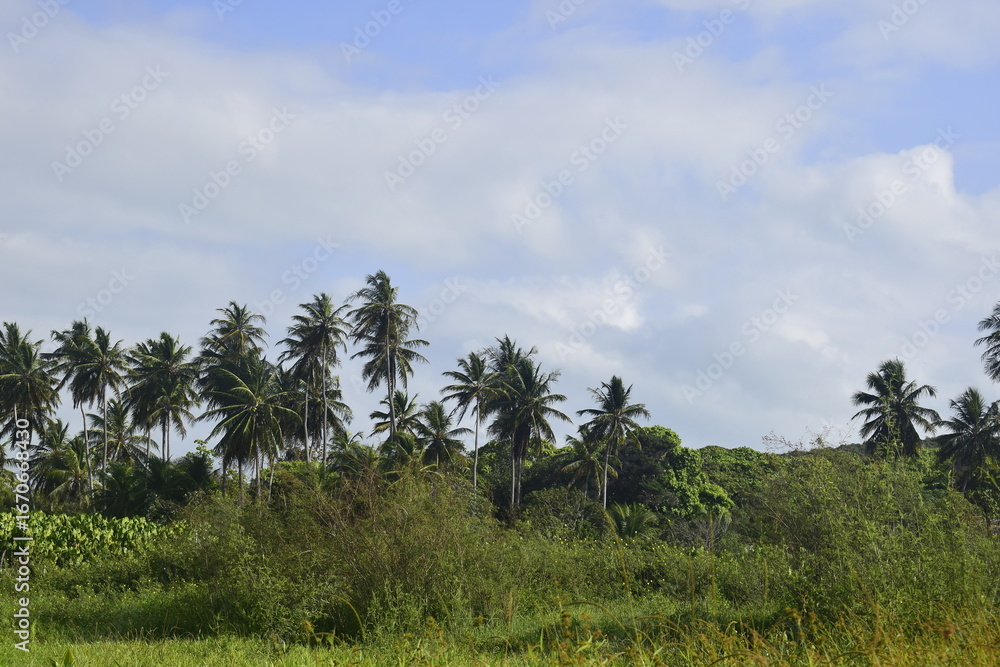 Agrofloresta de coqueiros tropical no nordeste brasileiro, cultivo ecológico de coco verde em meio a floresta