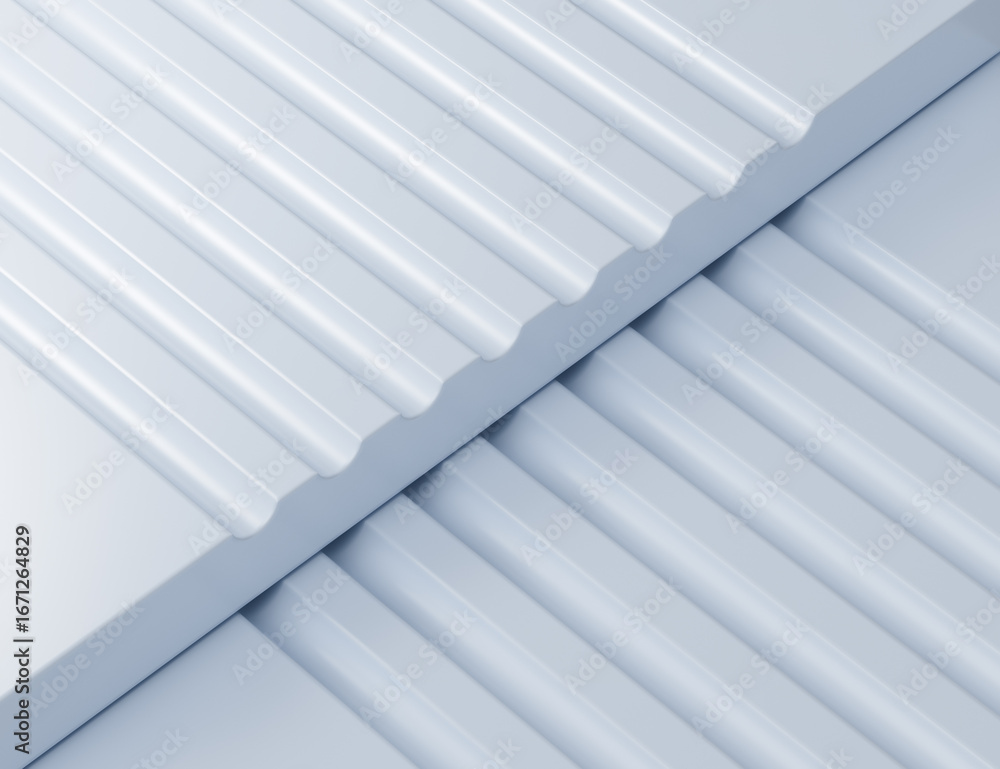 Close-up of textured metal sheets with parallel grooves, showcasing a modern design. 3d illustration