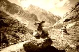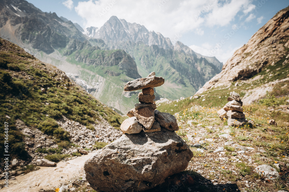 Stack of stones on top of the mountain, Dolomites, Italy. Concept of balance and harmony.