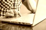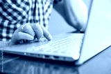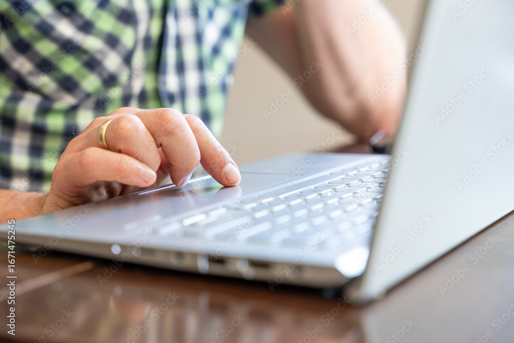 Closeup Hand Using Laptop Touchpad Indoors For Remote Work And Home Office Digital Productivity