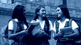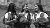 Happy School Girls In Uniform Holding Books