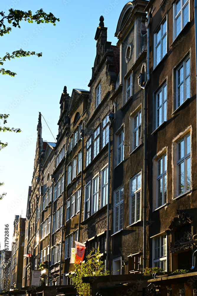The Holy Spirit street (polish: Ducha Swietego) in Gdansk, Poland. Sunset time