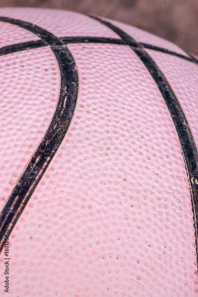 Old basketball resting on a surface showing wear and tear indicative of years of use and play