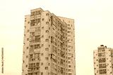 High-rise apartment buildings in a residential area highlight urban living, real estate trends, and rental options