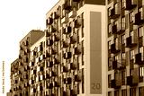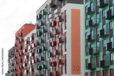 Colorful high-rise apartment buildings in a bustling urban residential area highlighting rent and mortgage options for potential tenants