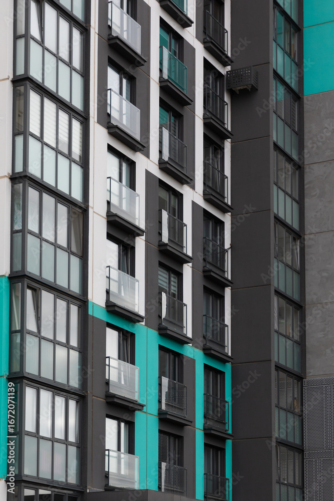 Modern high-rise apartment building showcasing residential living options in a vibrant urban area, perfect for renters and homeowners alike
