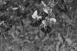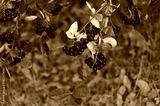 Aronia melanocarpa, the black chokeberry, ripe clusters of berries, plant harvest background