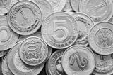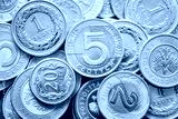 Close up picture of Polish Zloty coins, shallow depth of field.