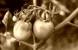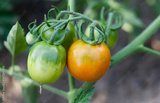 Garden bed tomato branch still life photography. Growing organic vegetables branch close-up. Shallow depth of field, selective focus