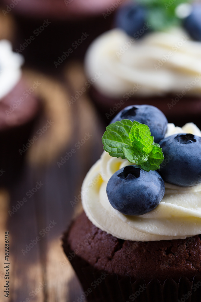 Blueberry and cream cheese chocolate cupcake