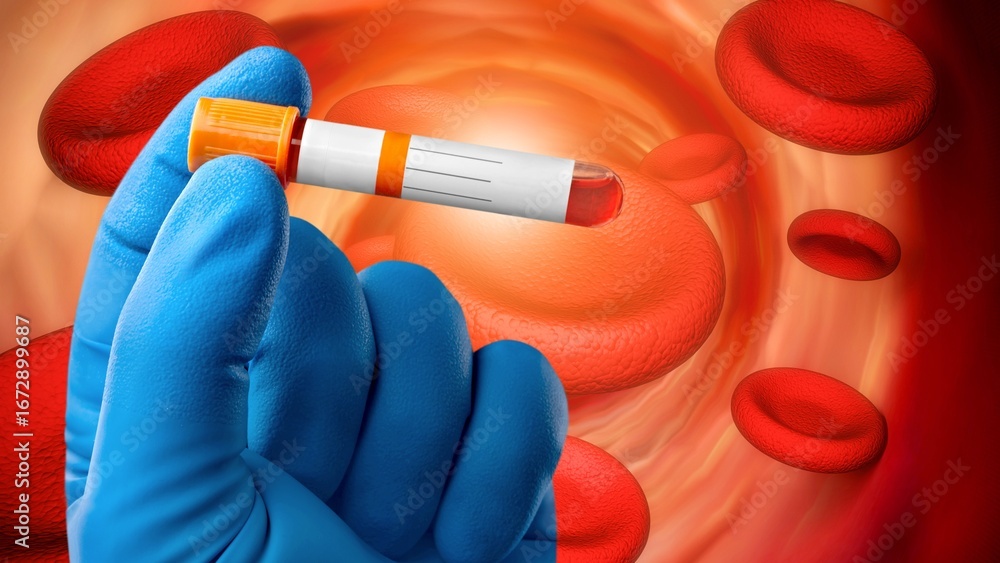 Patient blood test, doctor hand hold test tube