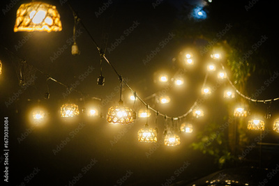 Nighttime Decorative String Lights Glowing Outdoors