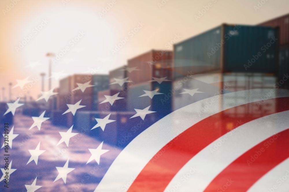 US tariffs energy policy. Flag background