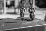 Swing Chain Links On Black Seat, Metal Hardware Safety Detail At Outdoor Park Playground