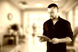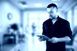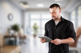 Smiling mature business worker manager holding digital tablet