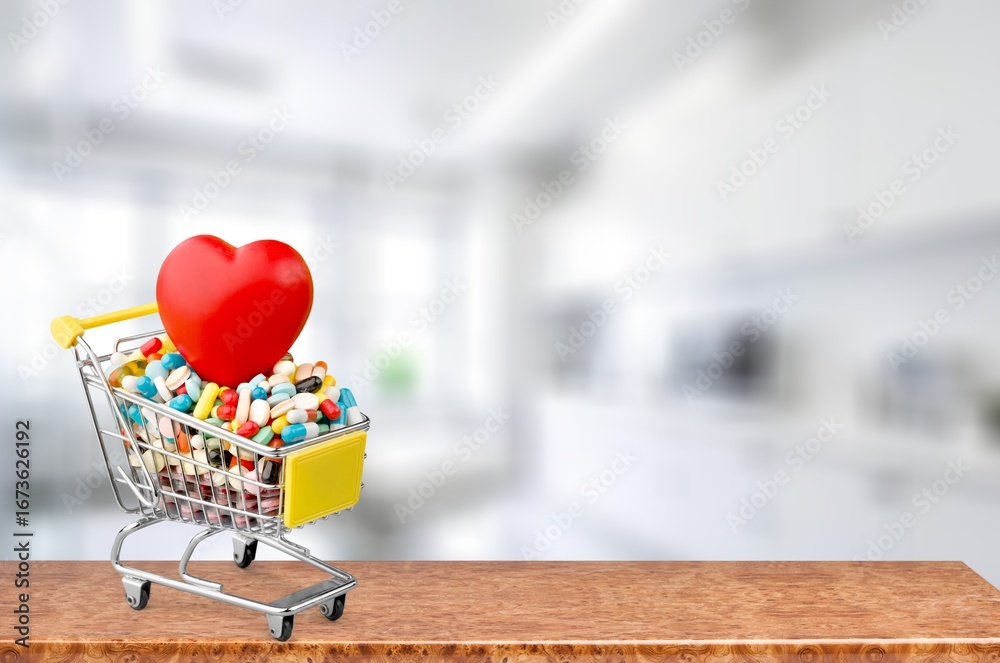 A cart trolley full of pills, medicines concept.