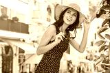 Smiling beautiful young woman in summer hat