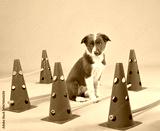 Sitting cute border collie puppy on dog fitness