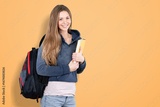 portrait of happy young woman student posing