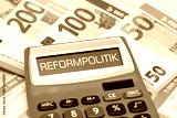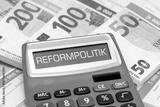 Das Display von einem Taschenrechner ist beschriftet mit Reformpolitik als Symbolbild für notwendige Reformen in Wirtschaft, Arbeit, Rente, Gesundheit und Soziales - FOTOMONTAGE