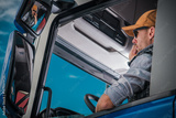 Truck Driver Talking on Phone While Waiting in Vehicle