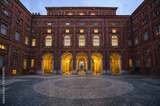 Exploring the elegant courtyard of Palazzo Carignano in Turin, Italy during twilight