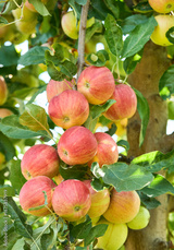 Organic red apples with leaves