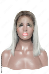 Straight black to grey ombre style human hair weaves extensions lace bob wigs