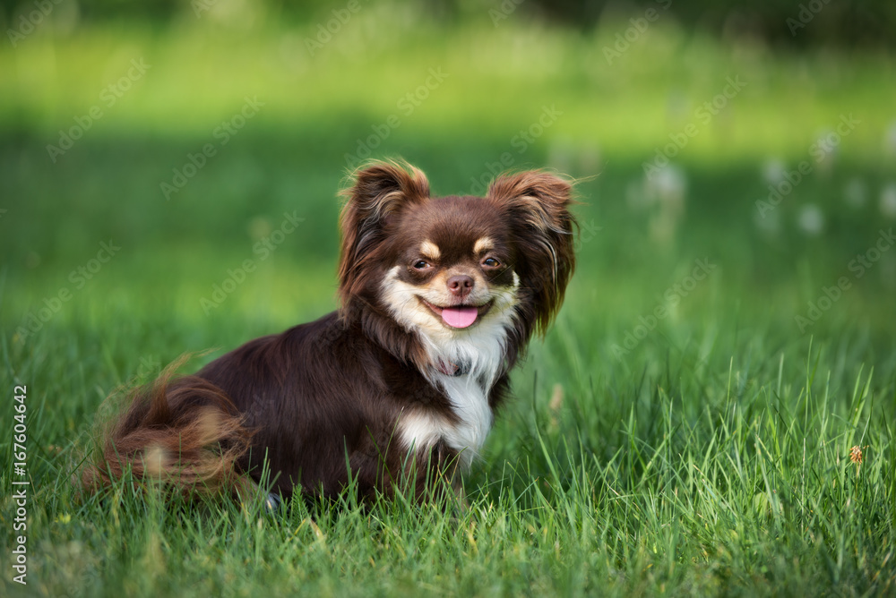 happy brown chihuahua dog posing on grass