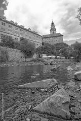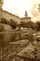 Panoramic view over Cesky Krumlov with Moldau river, Czech Republic