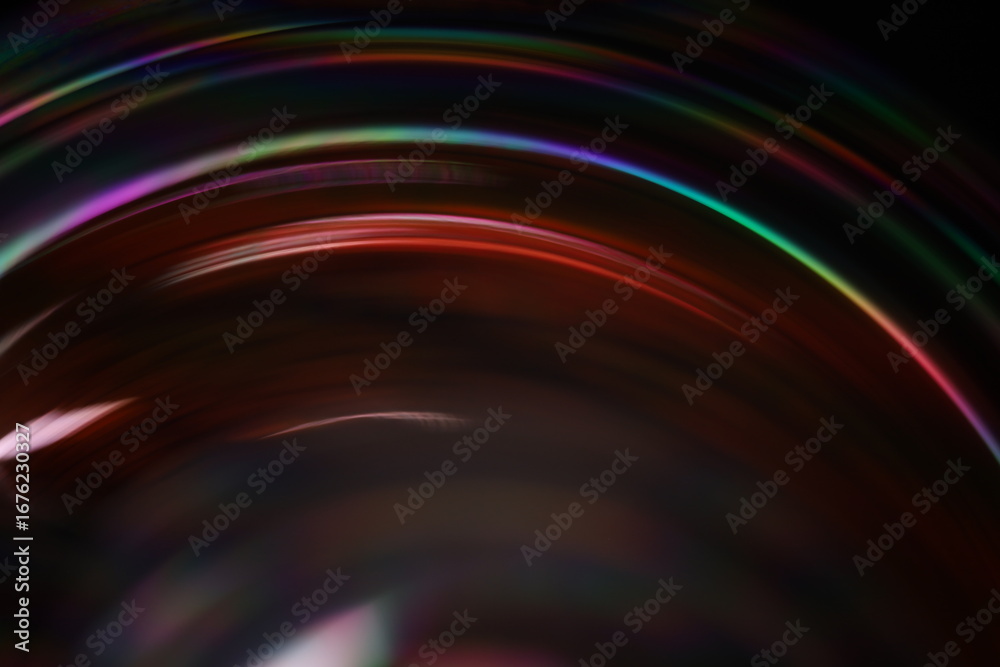 Bright multicoloured liquid surface on black background, interference pattern, one colourful curved line