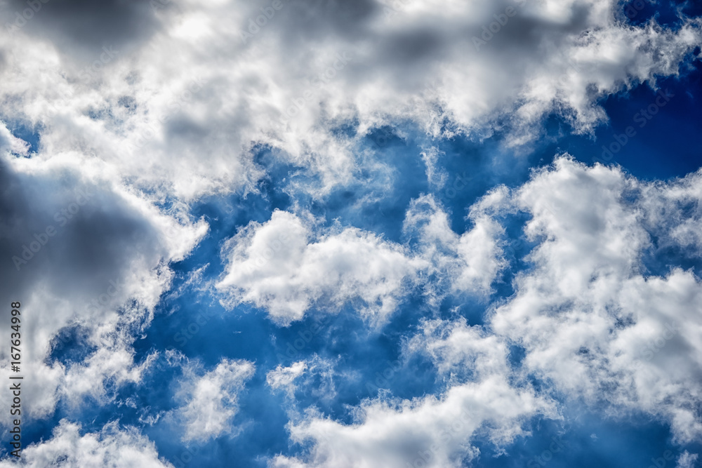 Blue sky with white clouds closeup