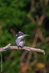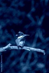 Male Crested Kingfisher perched on the tree branch