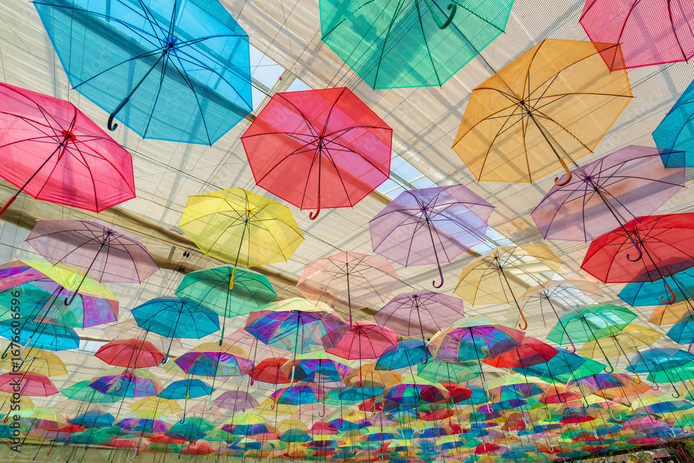Umbrella sky with colorful umbrellas
