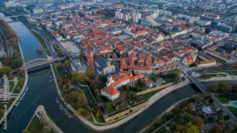 Aerial view of the city Gyor in Hungary on on a sunny day in autumn.