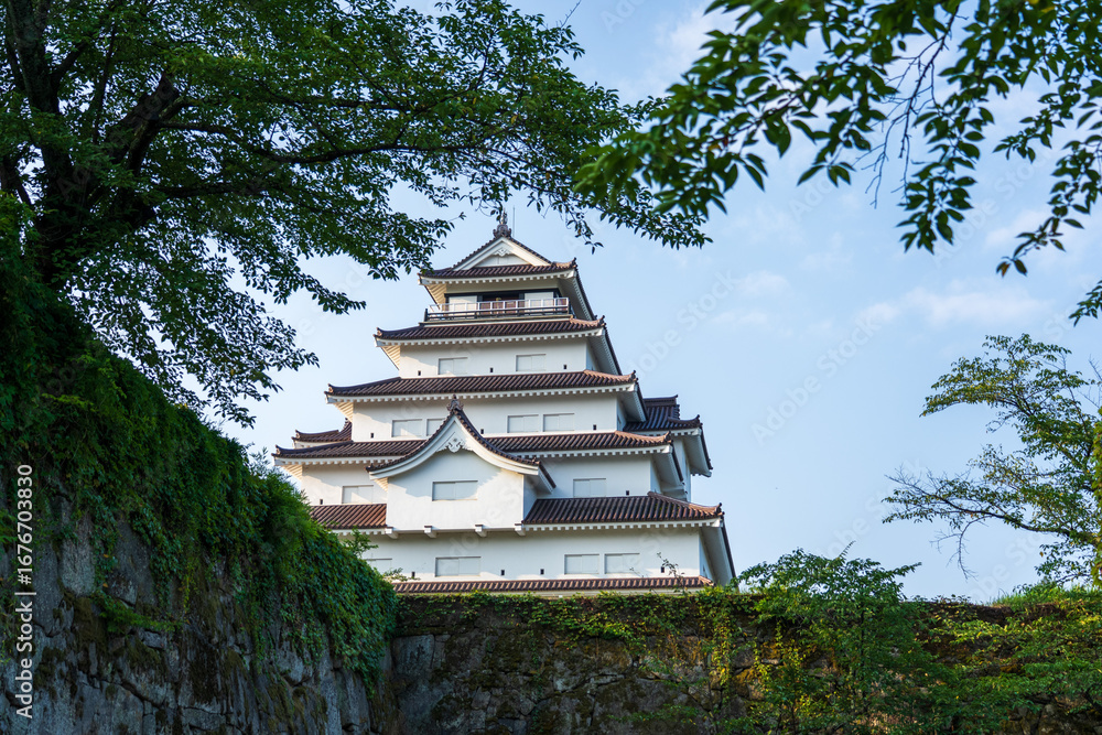 Facade of the Tsuruga Castle in the morning in Fukushima, Japan