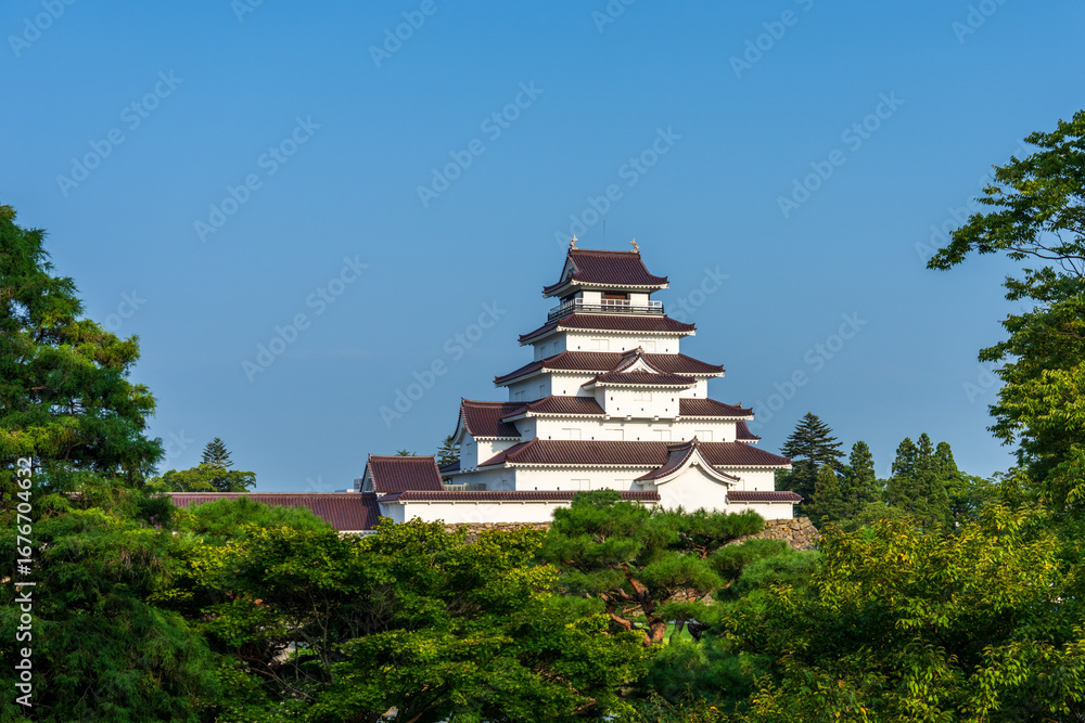 Facade of the Tsuruga Castle in the morning in Fukushima, Japan